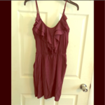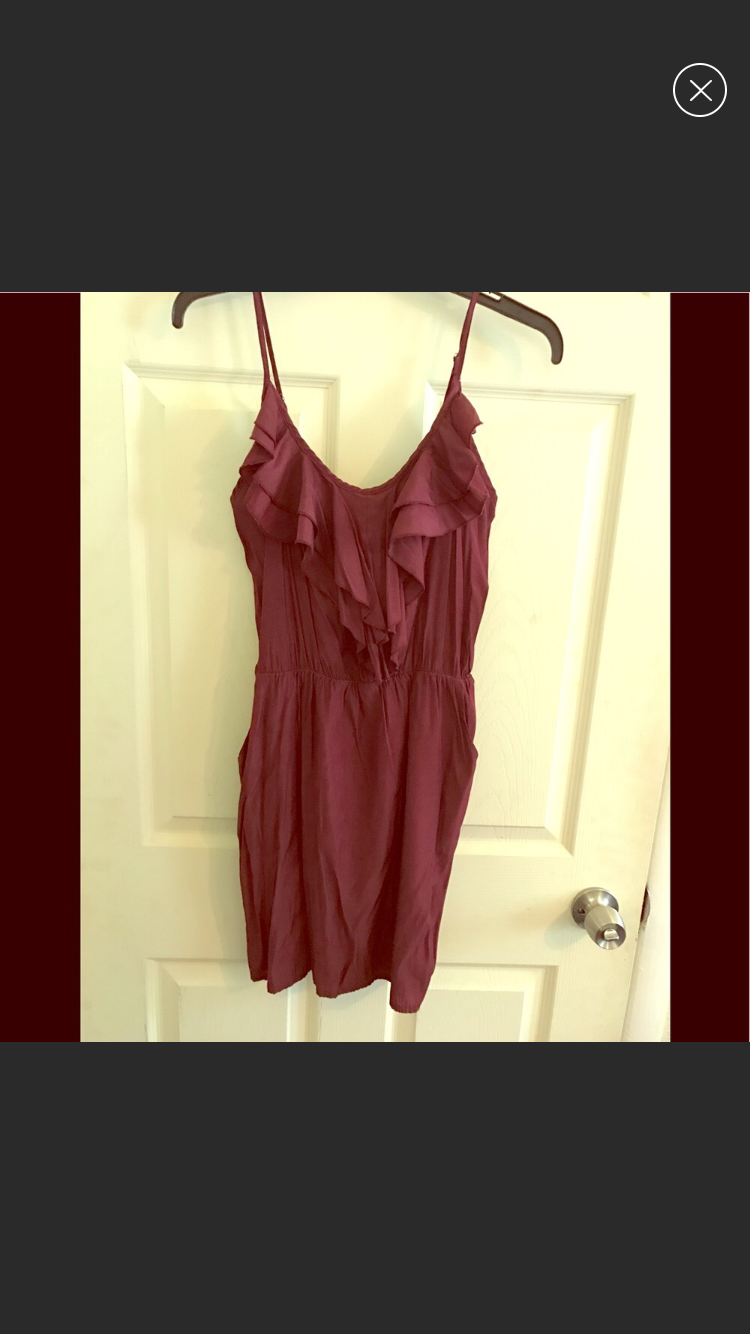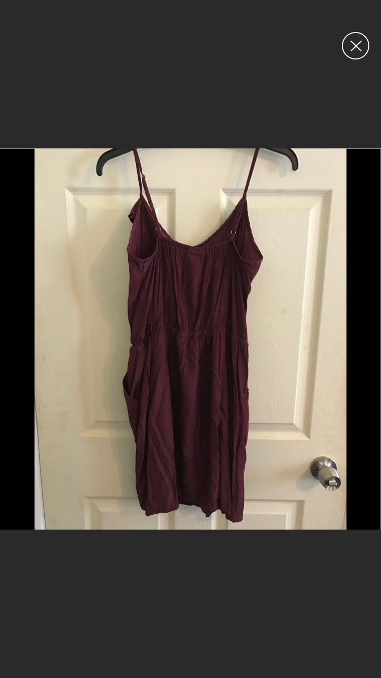 This dress is in perfect condition - just needs some ironing. Dress has an elastic in the middle, and side pockets. Color is maroon.