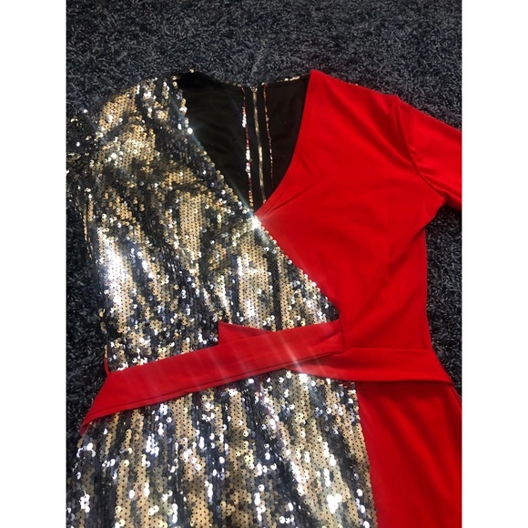 Red and Silver Sequin Adjustable Party Wrap Dress Perfect for the Holidays