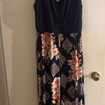 I only worn this beautiful Jumpsuit once and it fits true to a size Large. Great Condition. Colors are Navy and Pink.