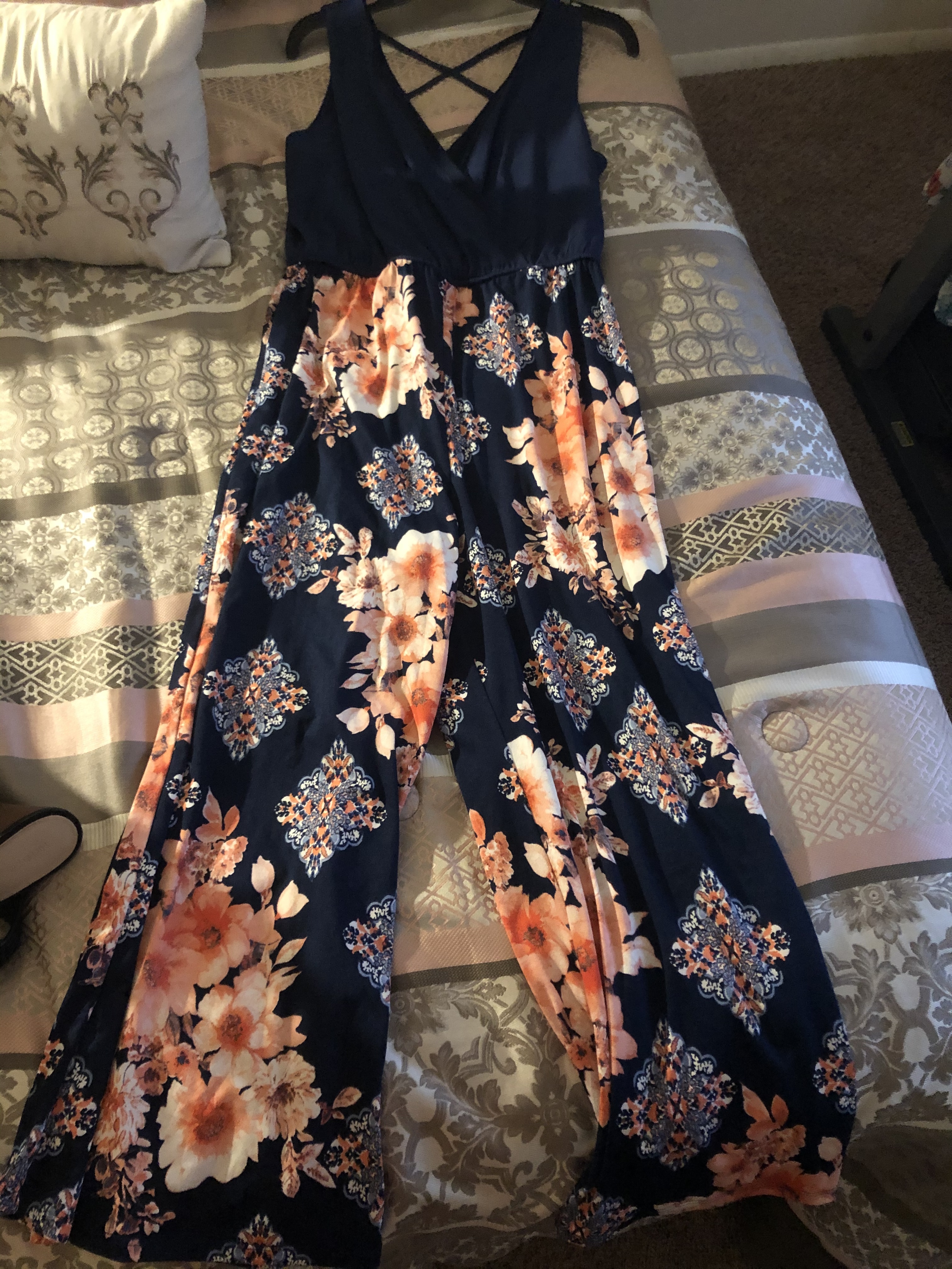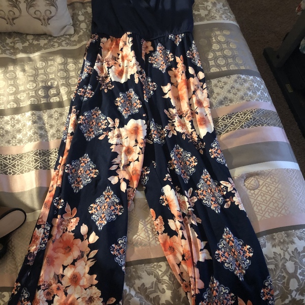 Navy and Pink Floral Pants Jumpsuit Only Worn Once Size Large