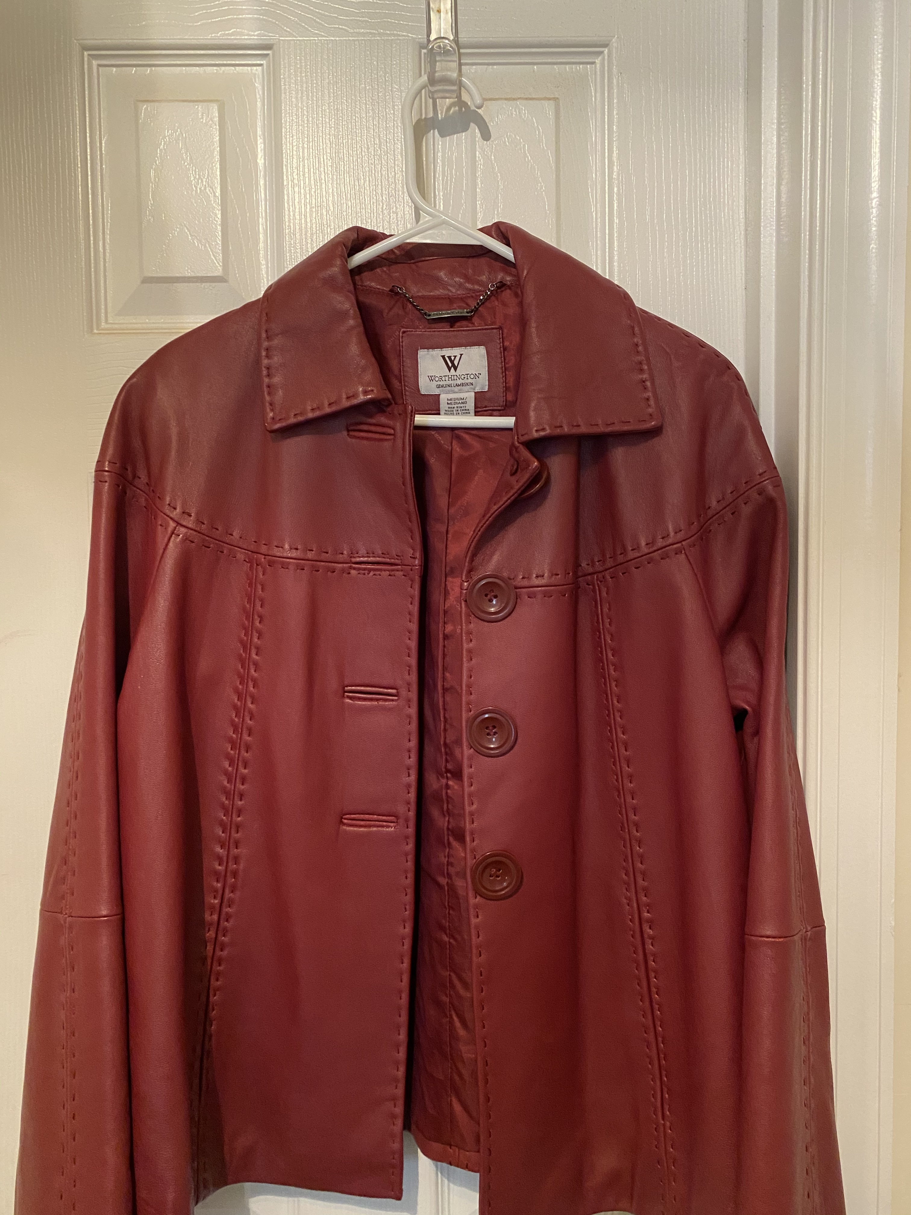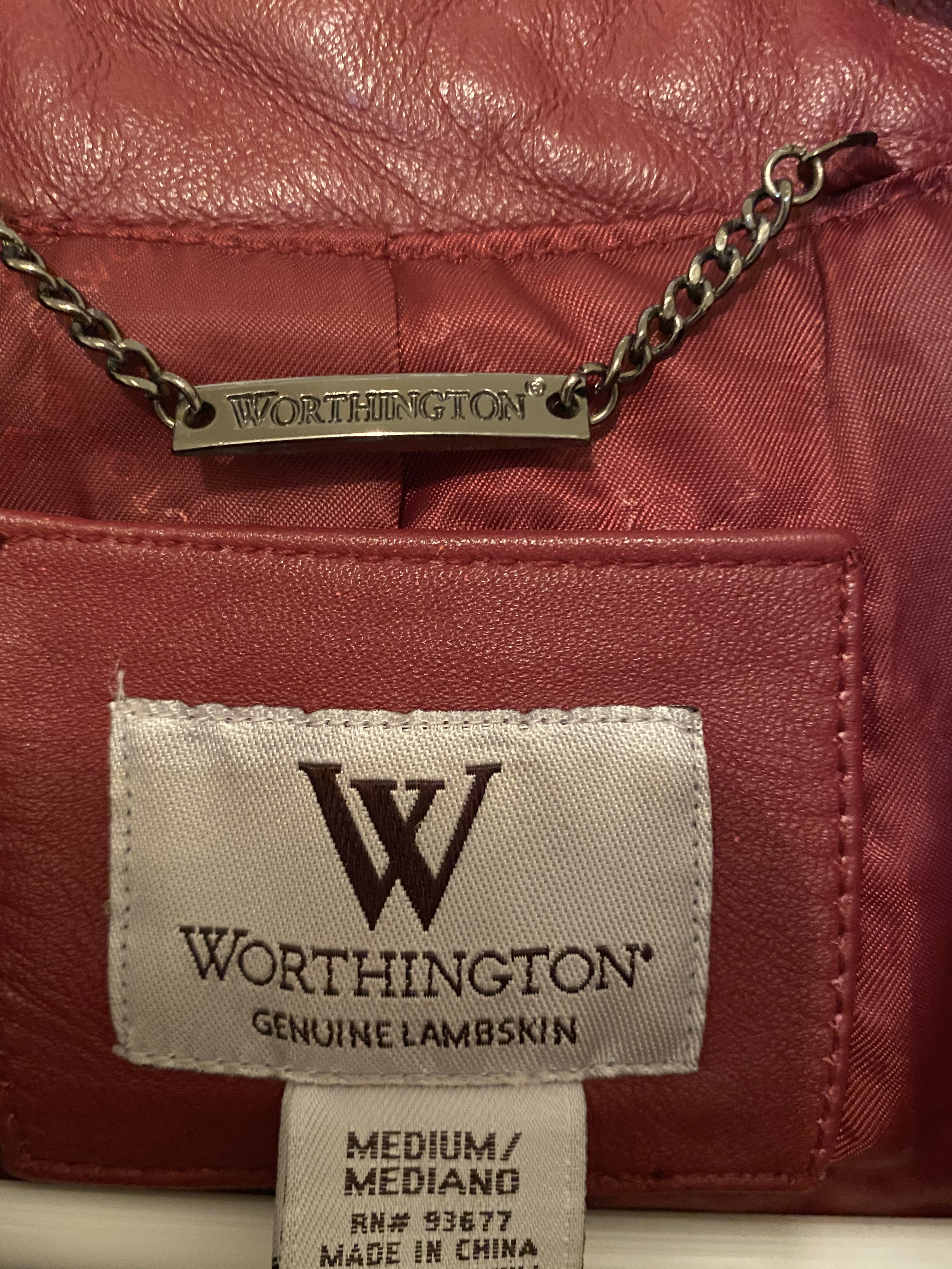Worthington 100% Genuine Lambskin Women’s Coat. Condition is Like New; tried on once, does not fit. Color is Maroon.
