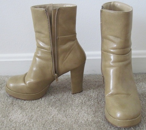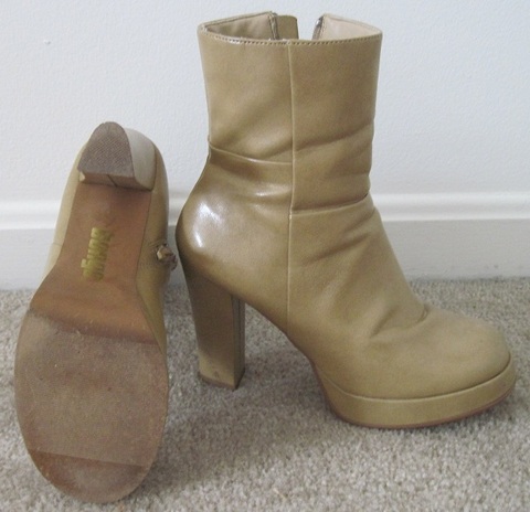 Light brown / khaki colored boots. In good condition except that the soles are a bit worn but who sees the bottom of your feet anyway? :) Size 6 1/2 M.