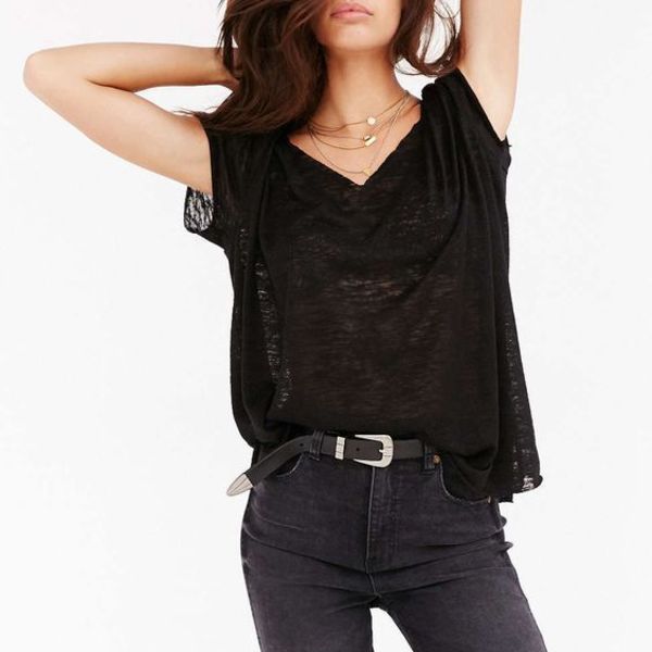 Seriously slouchy V-neck tee from Project Social T cut long + loose for easy layering over everything. Made from a softly textured raw-edge knit that will unravel slightly after washing to evolve, adding vintage character to the garment, over time. Content + Care - Rayon, polyester - Machine wash - Made in the USA Size + Fit - Model is wearing size Medium - Measurements taken from size Medium - Chest: 46" - Length: 26" Shows some signs of wear but still great top
