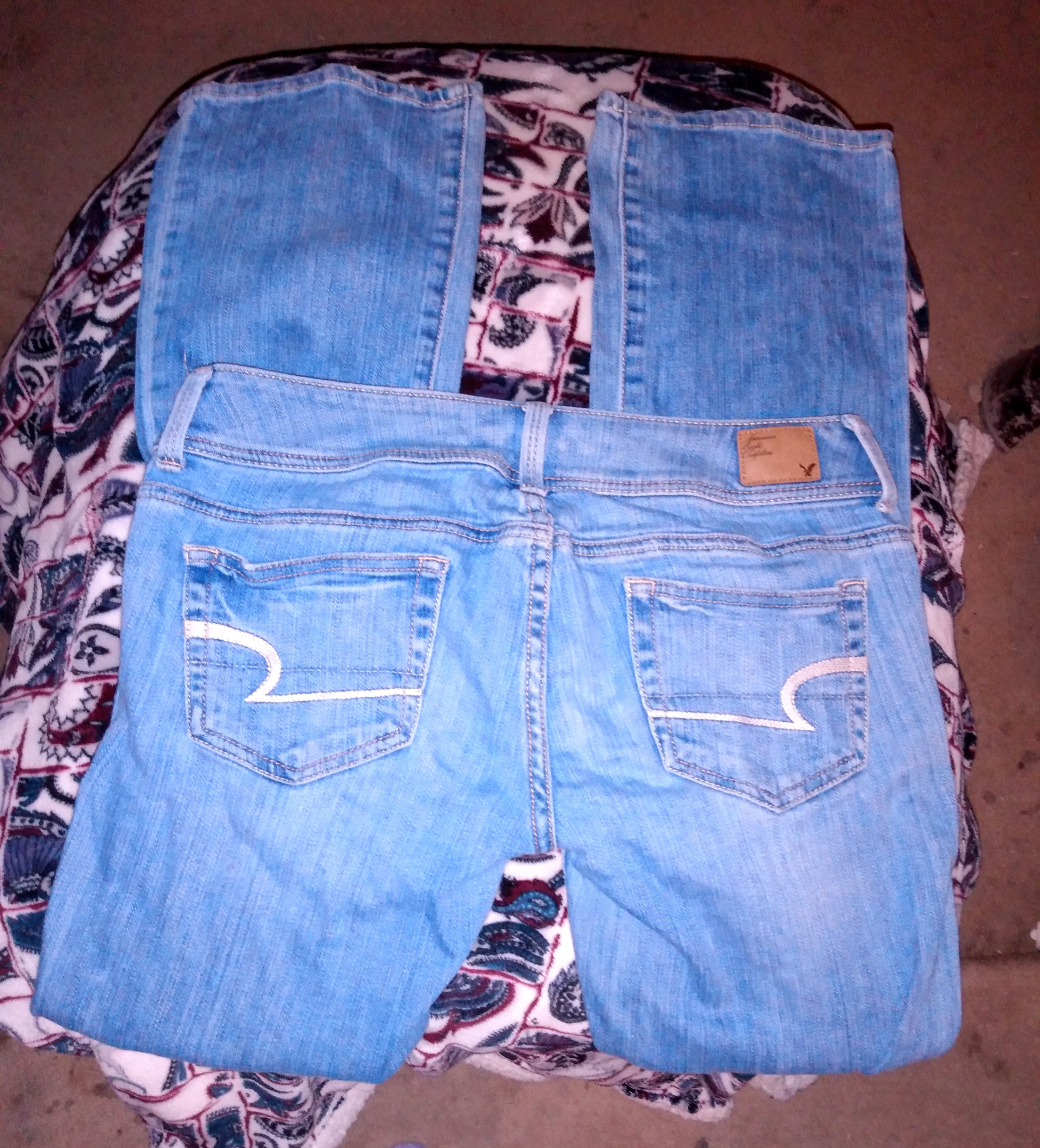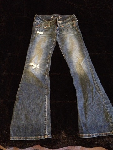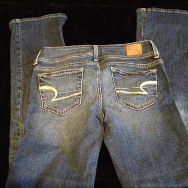 Women's American Eagle Jeans Size: 4 Leg Style: Bootcut Inseam: Roughly 28 1/2 Inches Waist: Roughly 15 Inches Across Material: 99% Cotton, 1% Spandex Condition: In Good Condition!