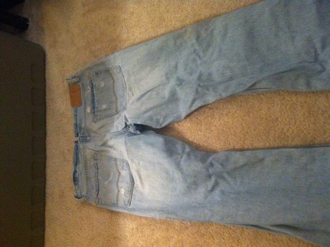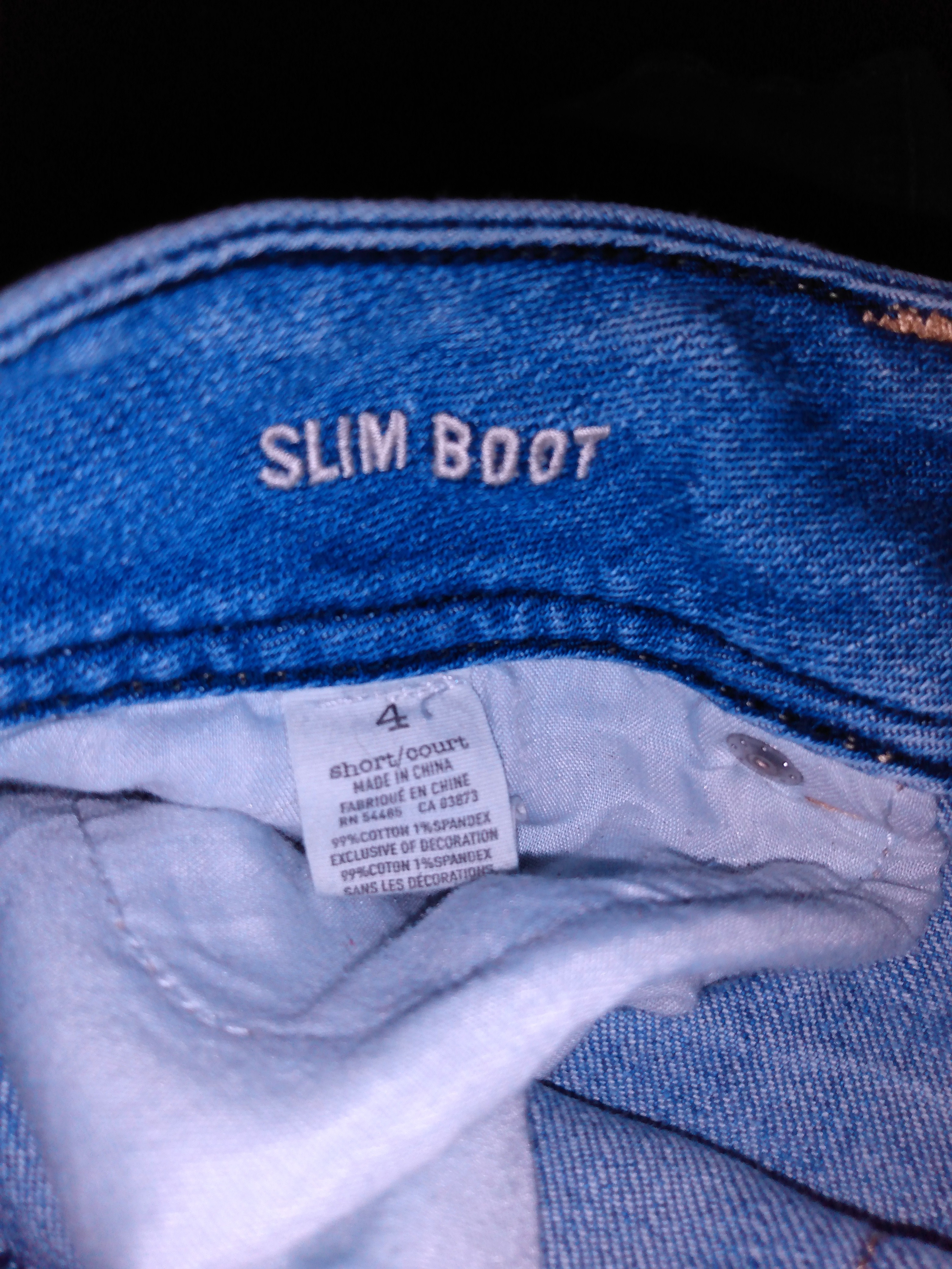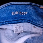 These jeans are in great shape. Slim boot style, slightly distressed.