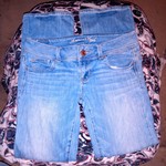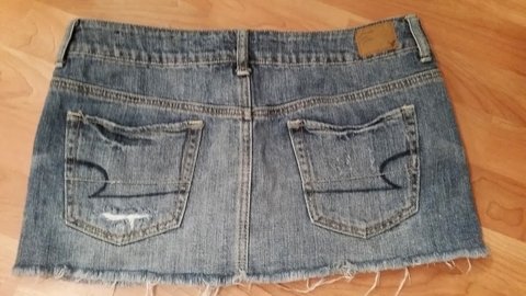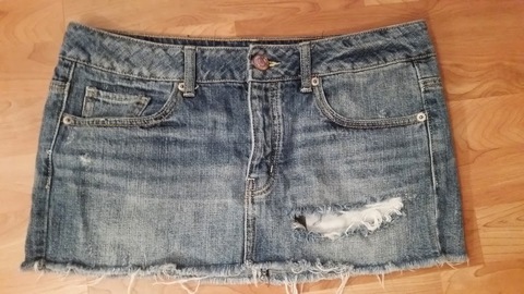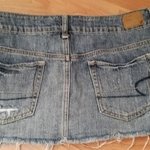 Only worn a couple times American Eagle size 6 denim factory distressed skirt. Measures 10.5" length and waist is 30"