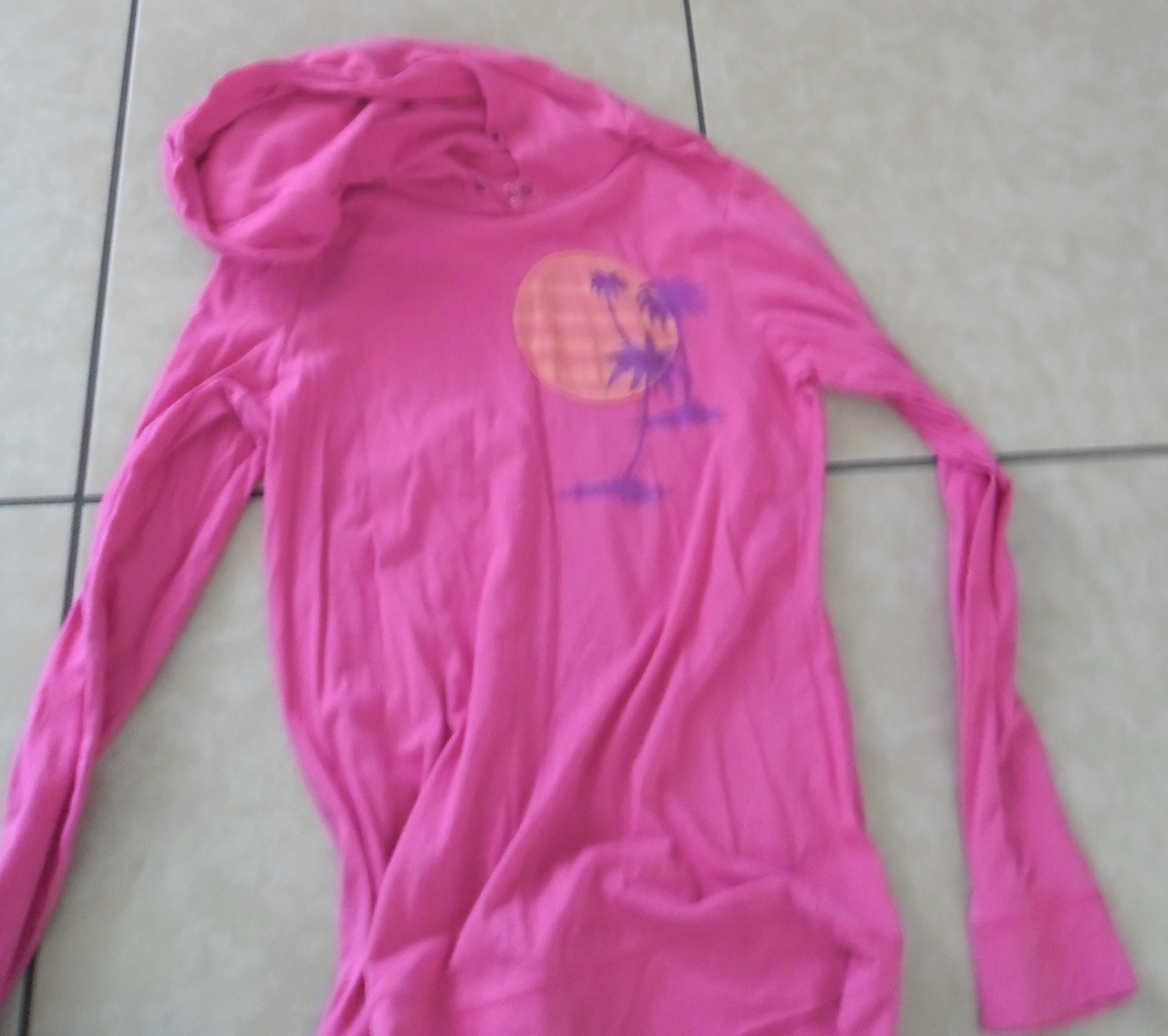 Really cute suit! Too skimpy for me haha. It's basically in excellent condition except I the left side of the chest it look spotty like water damage or something? I mean I almost didn't notice it. You have to REALLY look at it. Top is small bottom is medium