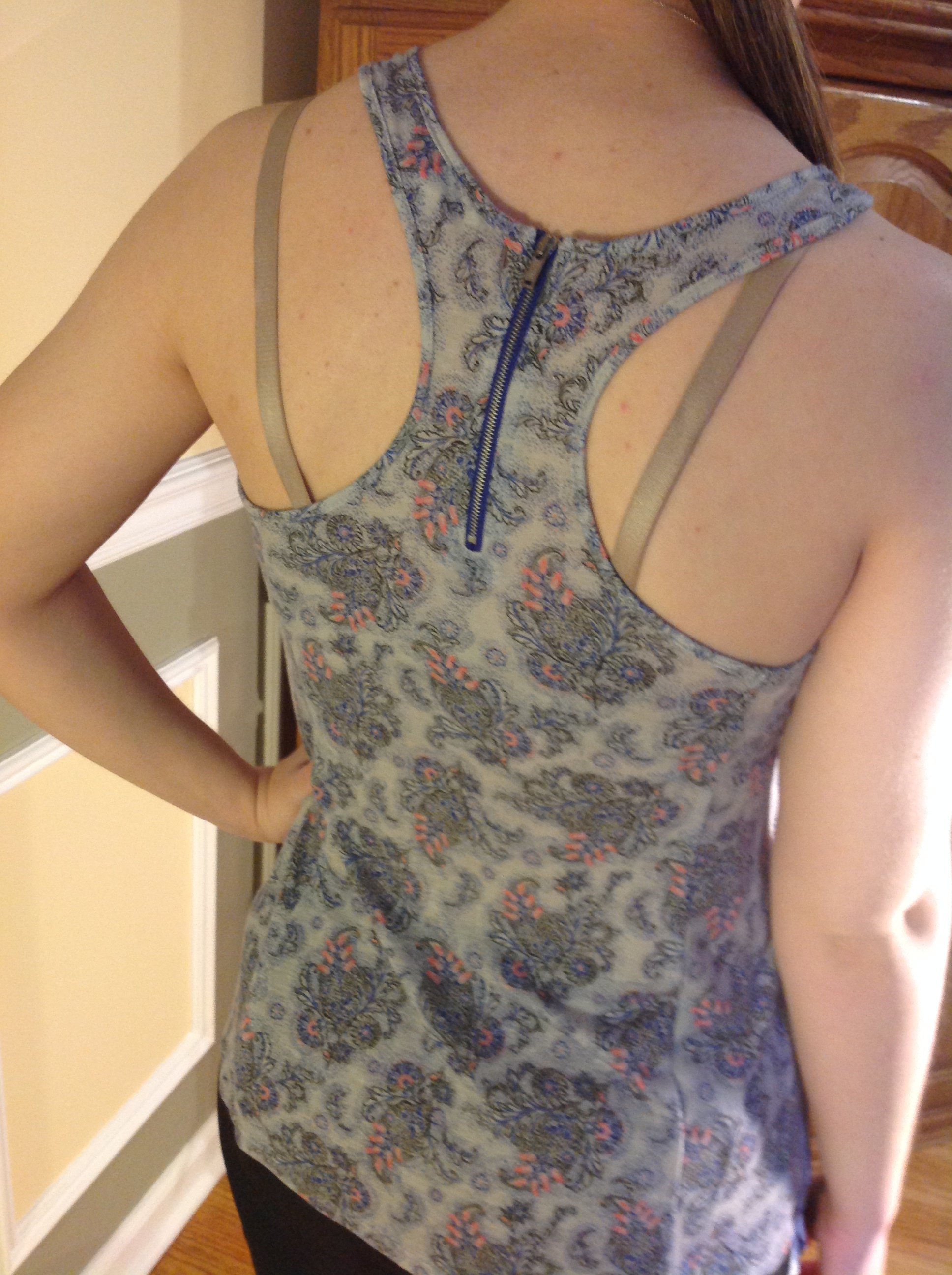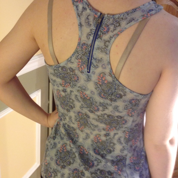 This is a patterned, no-sleeve top from American Eagle with a cute little zipper on the back.