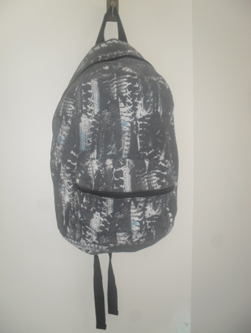 A very cool authentic Fossil Backpack. Pockets on both the outside to hold your drinks, a small pocket on the front that has many smaller ones on the inside. Big pocket is large enough for a small Laptop and some books (I uses this for a while in college) along with several more pickets. This is great for someone who likes to be organized. The shiny fabric makes it easy to keep clean. It is used and there are normal wear and tear on there, but it's still is superb shape. There is a small spot in the bottom left-hand corner of the front that is damaged. You can see it in the photograph. But if you would like a better photograph I be happy to send it to you, along with any other pictures you would like. There are no pen marks on the inside, and the spot on the front is the only major, or noticeable blemish.