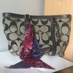 Used but apart from slight corner wear and tears and two spots of stains it is really good! Great size for traveling too. It is made of woven jacquard fabric specifically treated to repel water and stains. I bought the Coach Scarf separately but am willing to throw this in free. Condition 7/10 Bought for USD 400 or so.