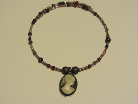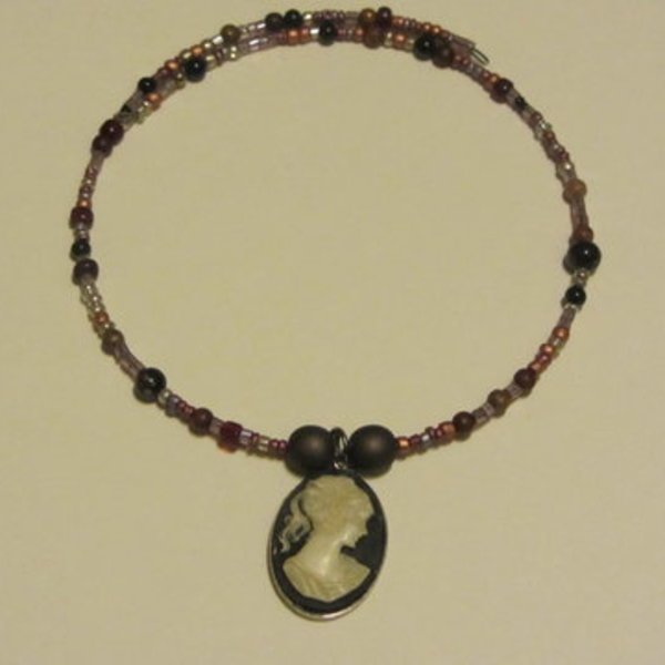 Handmade by me, glass bead assortment with cameo charm on memory wire