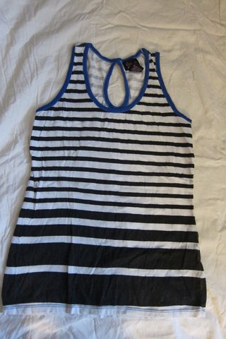 This is an adorable tank... I bought it because I loved it but it's just too tight for me. Size S. From Rave.