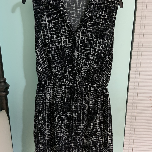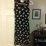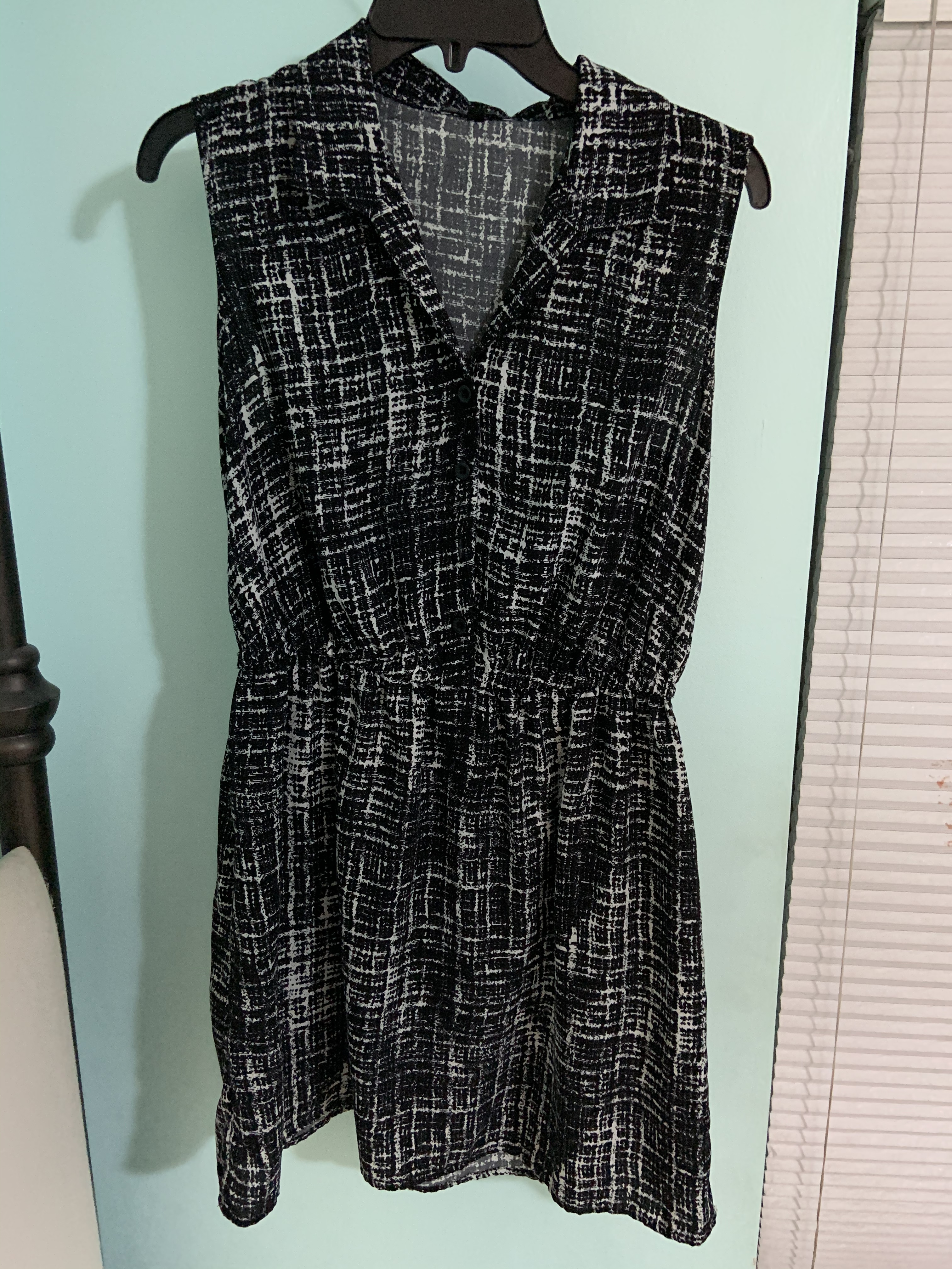 This black and white patterned dress looks fabulous cinched at the waist with a belt. It is collared and has a button up front and is a great summer outfit.