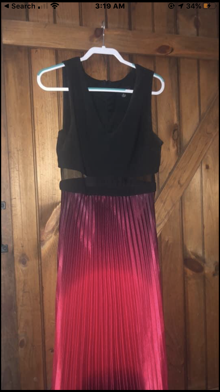 Betsy and Adams Black, Red, and Pink Ombré Prom Dress with Mesh Middle