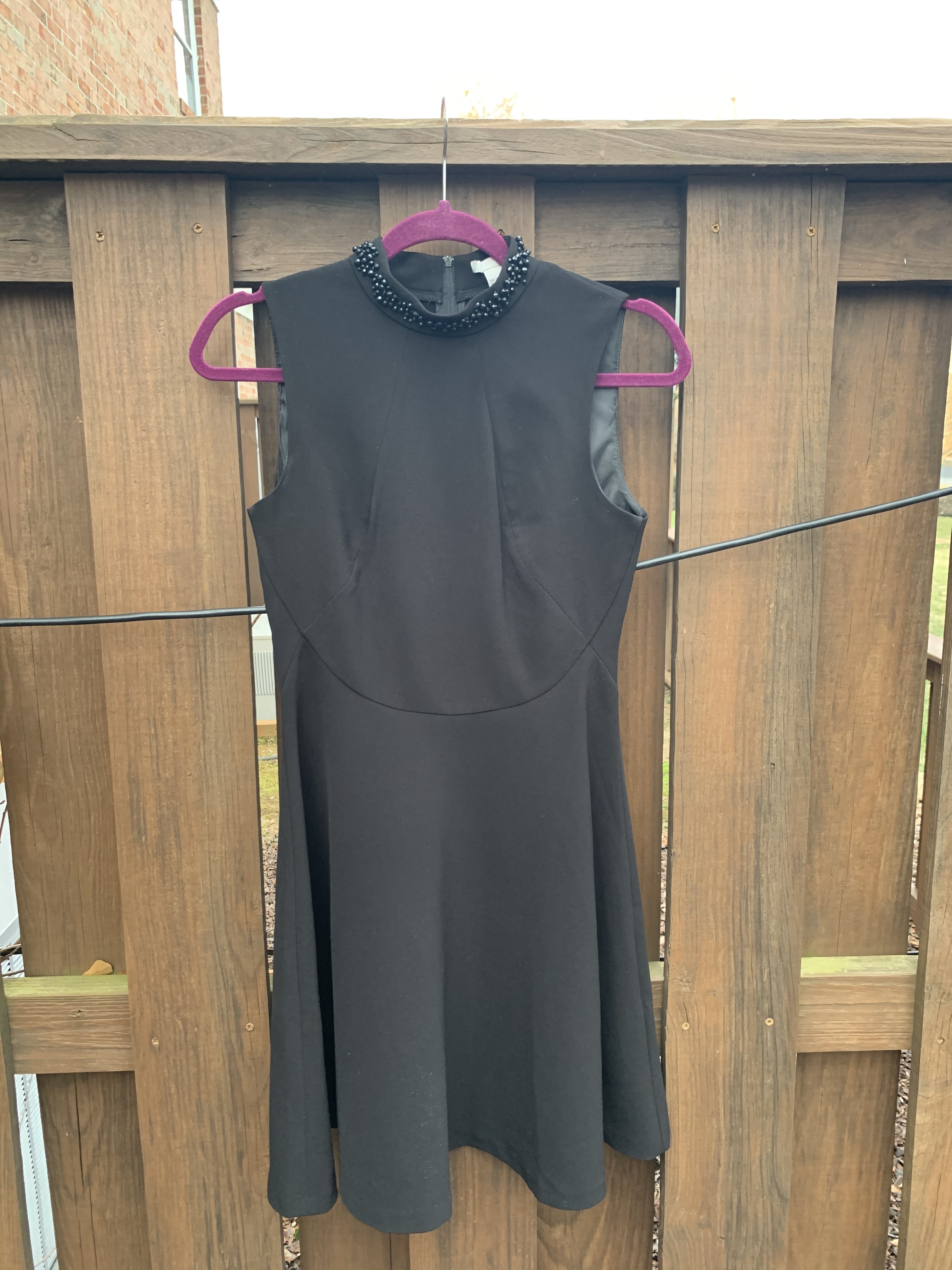 H+M black dress with stunning beaded neckline. Gently used. Great condition.