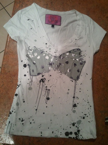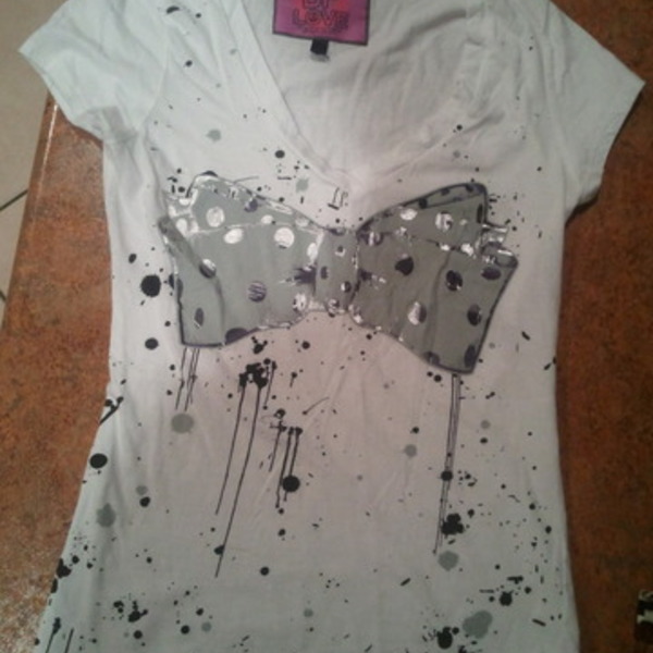 Worn once, Charlotte Russe bow top. Pocket on top right with a bow on it. Its actually a little sparkly, not as dull as it looks in the picture.