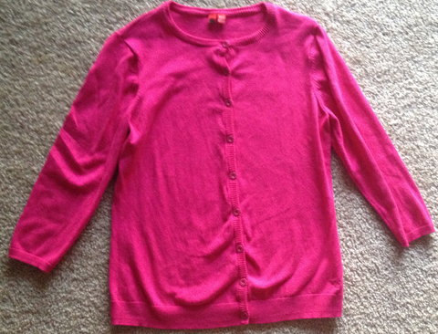 I love this cardigan but alas, I have gained too much weight to wear it. Tag says medium but it fits like a small.