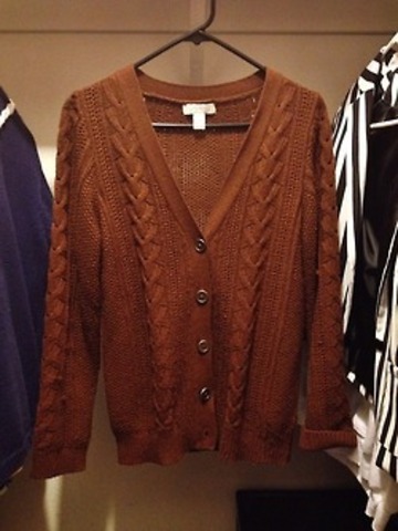 My sister also gave me this cardigan and I wore it a few times. I don't wear it anymore so no use in really keeping it. No notable wear or damage. The color is a rusty brownish. I tried to adjust the photo to get it as close as possible, but due to differences in screens it might look a little different in person than in the photo you see. Forever 21 Size Large