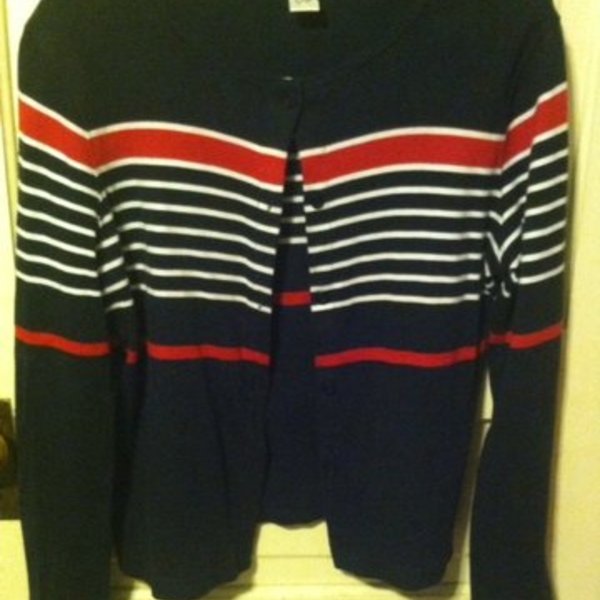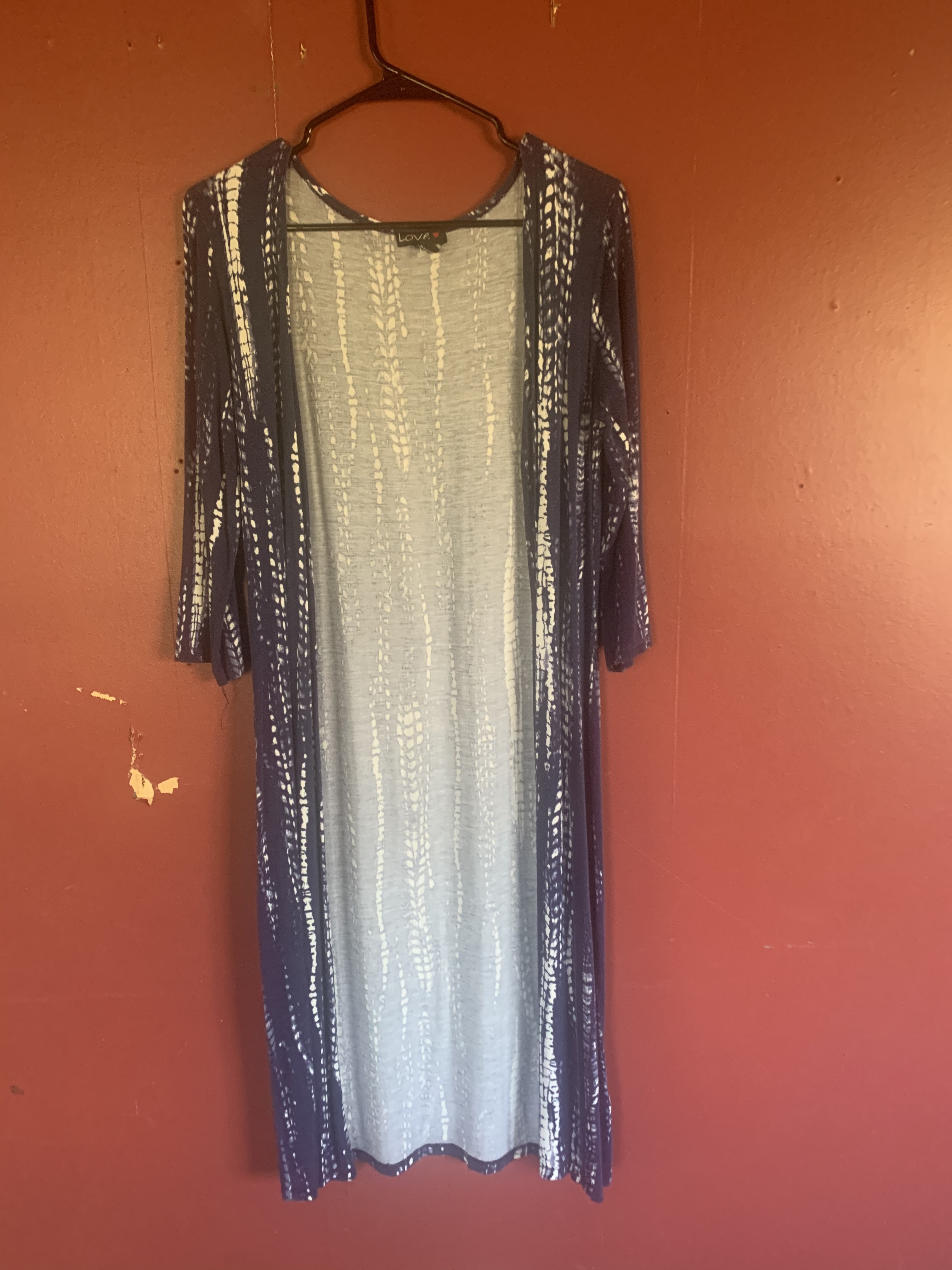 Never worn. Black and grey. Super cute and comfy, I just have another one almost exactly like it. Hangs down a lot in the front where It hangs open