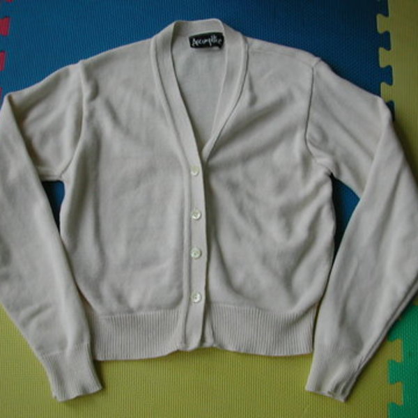 Nice, simple cream colored cropped cardigan. Dry clean only. I just don't seem to wear it...