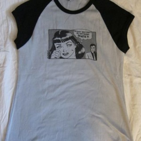 "Why can't my boyfriend skate?!" tee XS
