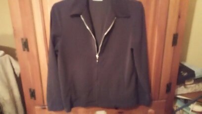 City Life Women's jacket zips up front and is very nice. Fits like a small to a medium.