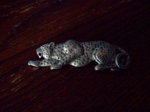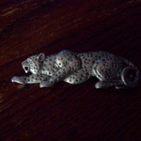 Small pewter cheetah pin on brooch. Measures about 1 1/2". Has "JJc" label on the back but for the life of me I don't remember where it came from.