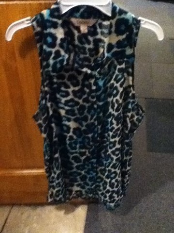 Cute Sleeveless Top size large good condition no holes/stains it's semi-sheer; black with attached leopard print that ties in front