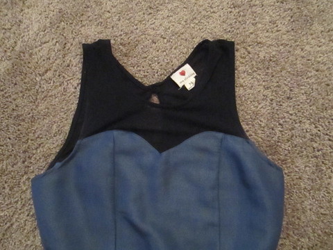 Very cute and comfy! It is in great condition. The dress is a soft cotton material made to resemble jean material. There is black sheer lining the chest and upper back. Very cute with a chic belt and fitted leather jacket! Let me know if you're interested! I'm up for any questions as well :] Also, ask for DISCOUNTS or SWAPS! I'm trying to downsize! :] ** FREE item with any swap! ** Ask about BUNDLES!!