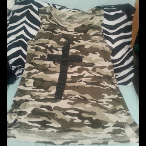 NWOT Camo Cross top! :) WILL BE PICKY!!! Says size XS but fits size Small-Medium best!