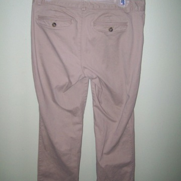 Worn once then I like grew out of them. Dockers brand, tan/dark beige with the slit back pocket style. Great work pants.