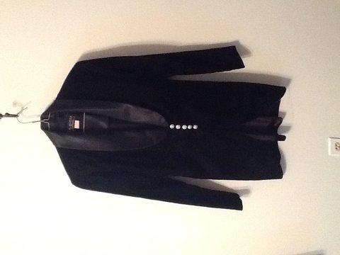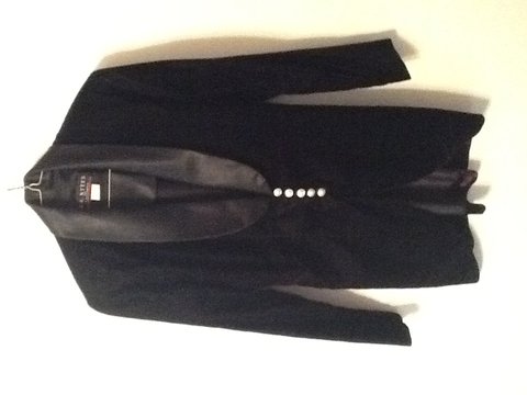 Great for a tall lady. Sleeves nice and long, Wide lapel with white trim on the lapels. Seldom worn. I'm a fair redhead and white was NOT my color. Like new. Metrostyle brand. Lined. Photo doesn't do this one justice.