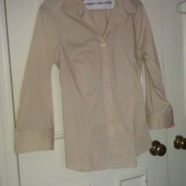 Light tan/khaki colored button up shirt. From H&M, size 8 (medium) Just got back from dry cleaner