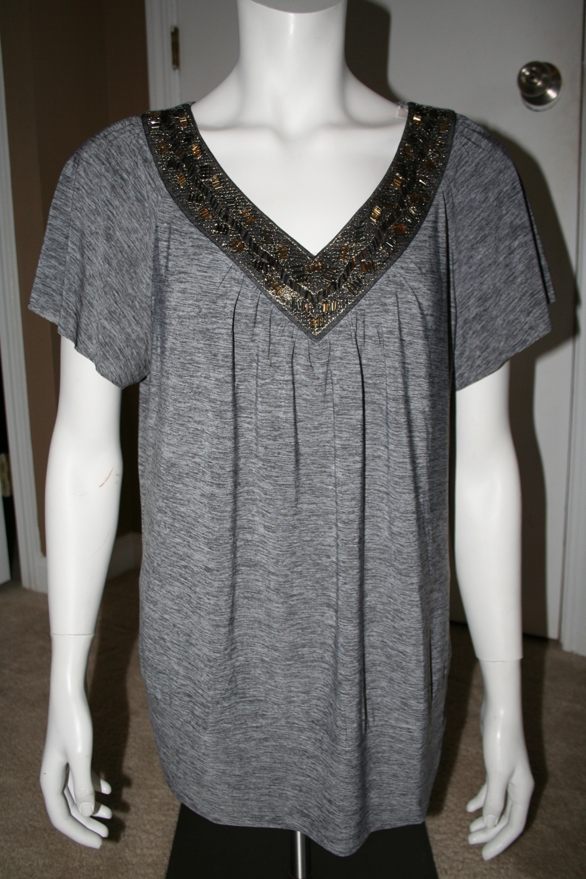 Dressy Neck Detail Bloused Tee L