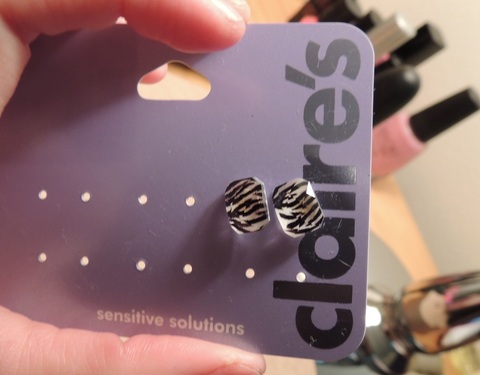 Brand new, never worn, never even took off of the tag. Bought a set of earrings and I liked them all except for these. Still really cute, just not my style. Square zebra print earrings from Claire's.