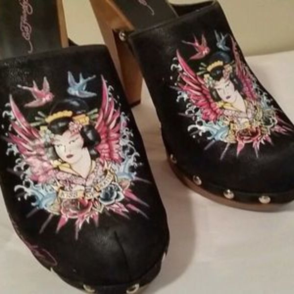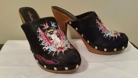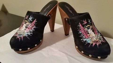 Size 9 women's Ed Hardy must have summer shoe!!! Great condition, hardly worn just look at the pictures. Heel height is 4".