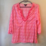 Vintage. Satin-y, super soft. Asian style blue shirt, buttons half way down the chest. Red and yellow flower accenting all over. Long sleeved. Can fit most sizes. No original tag.