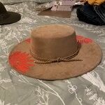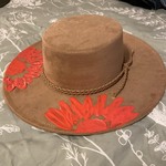 Brand new fedora hat in the color desert sand - hand painted flowers included