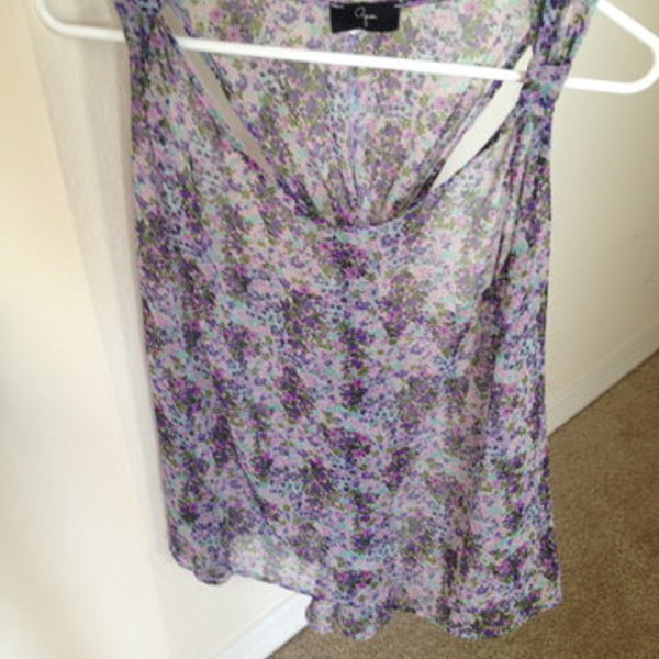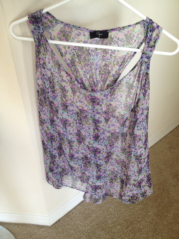 SO PRETTY. Cotton. Stretchy. Racer back. Built-in bra. "Good" because I have had it for a while, but lots of life left. I LURV this tank, but too fitted in the bust now that I'm nursing my lil baby... Tag says M but I think it could fit S too.
