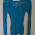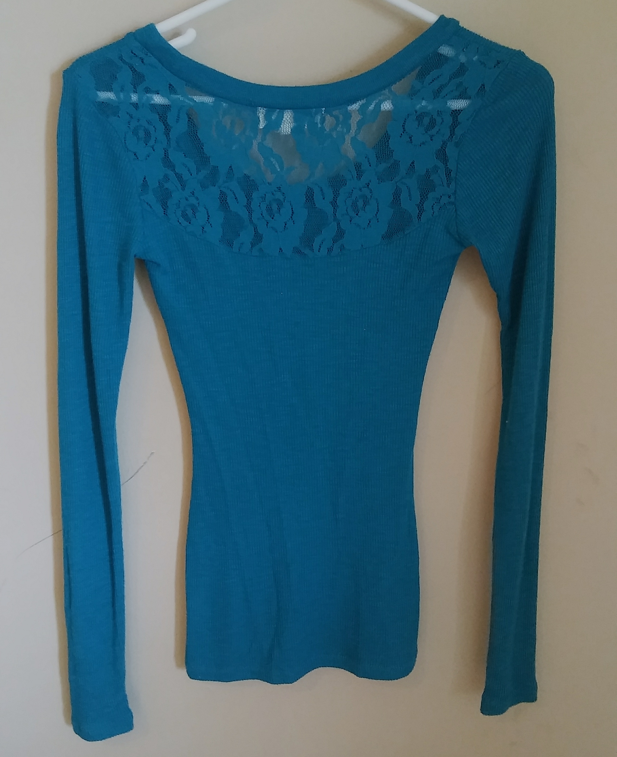 Derek Heart Flower Lace Back XS Nylon Teal Blue Top Long Sleeve Shirt Tunic