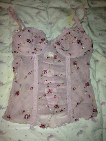 It is an older style blue oxford shirt that is in perfect condition that has white flowers all around it(looks just like the one hill side has) . It's sold out in stores, probably because it "doesn't wrinkle" learned that one the hard way. No need to fret because it will be washed, dried, folded, and perfectly packaged with spare buttons for you my lovelies.