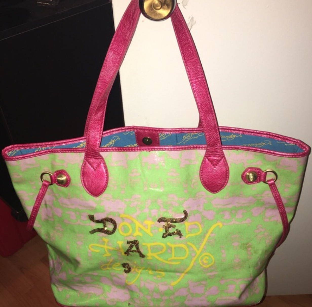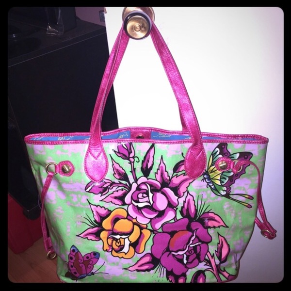 Big Ed Hardy Tote. Great for overnights or a beach bag. Beautiful and colorful flower design.