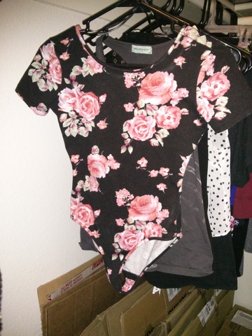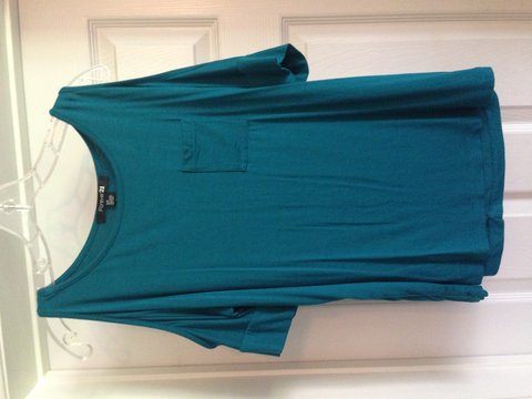 This is very cute on. Short dolman sleeves and drapey shape. Worn and washed twice, but never put in the dryer.