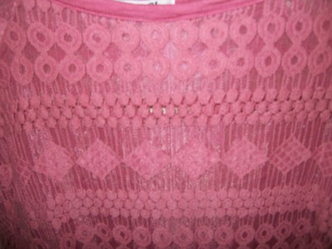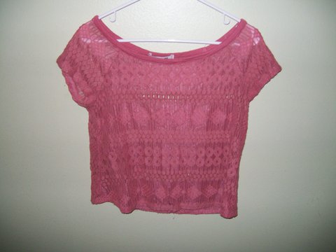 It's just not my style, but still very cute. Pink and see through with a netted type pattern. Could hang over one shoulder