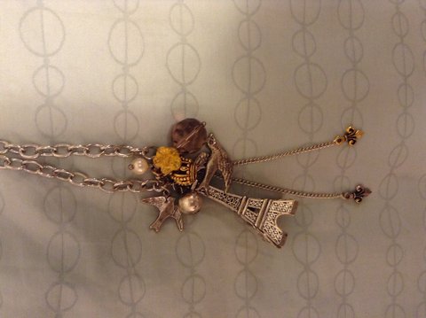 Eiffel Tower necklace with pretty little trinket charms. Tres chic!