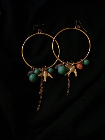 Gold chain with small owl charm. Owl is gold with turquoise eyes and feathers.
