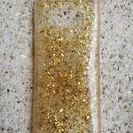 Nice, medium size brown with gold glitter tones Kathy Van Zealand purse. Gold hoops attach handles.