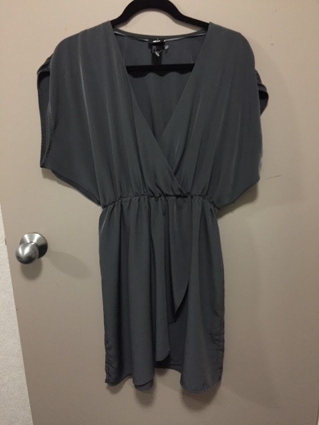 H&M dark grey business casual dress. Perfect for office jobs and even a night out! I really like this dress I just don't wear it and I don't need it!
