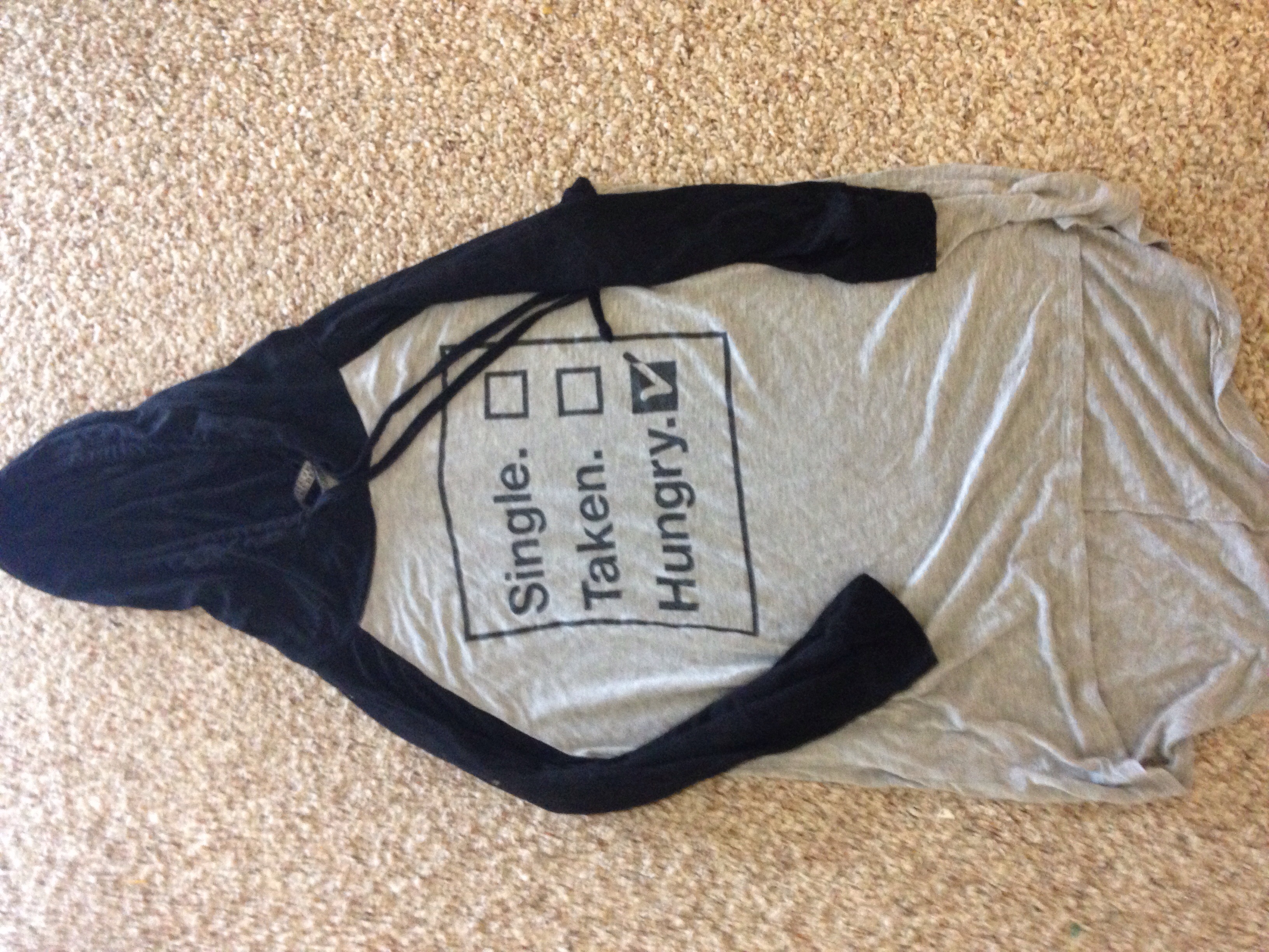 This is a grey sweater from Banana Republic. Tight fitting, especially around the arms, but has a nice look!