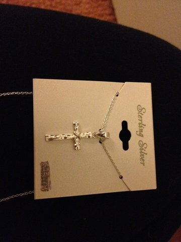Brand new necklace. Sterling silver chain and cross pendant. Recieved as a gift (which is why the price is crossed out at the bottom).